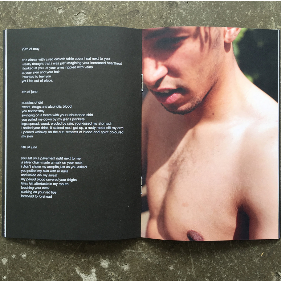 clean slate this hasn’t been walking along concrete wasps sand and flies light headed thinking of the first time you entered me ripe bananas sauerkraut for dinner in pain blood dripping accepting as earth pressing palms web of veins on your forehead spitting you can tell falling holding you tight between my thighs your dried lips eyes that barely see tattooed roses on fingers water on your hair breathed in my neck with a towel barely covering your body weight on mine cold feet thoughts wrapped around you i have no patience muscularly contracting your love